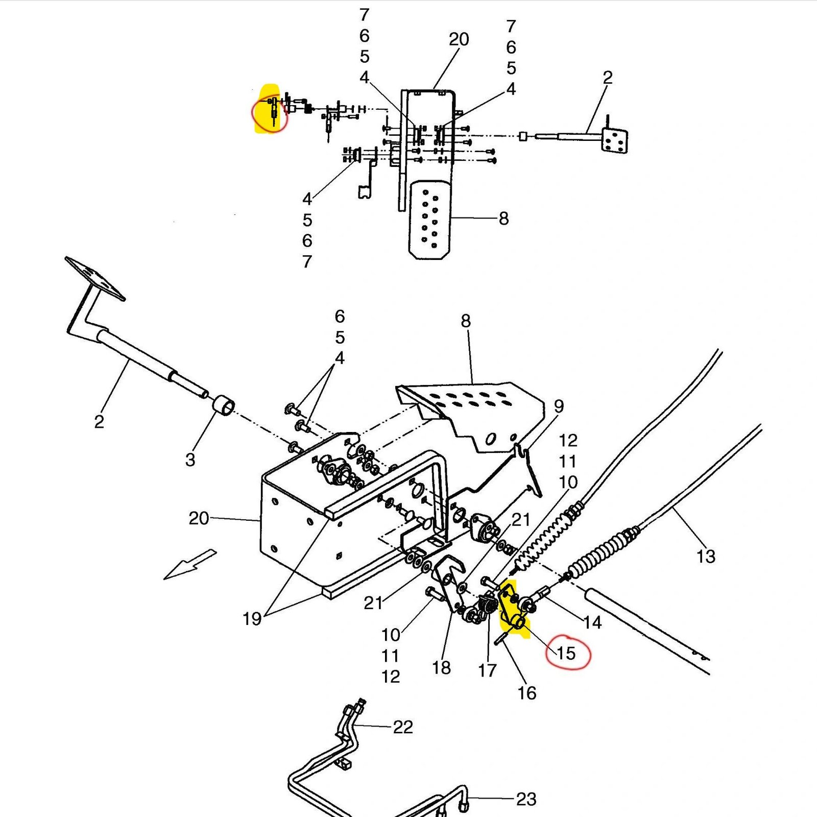 Aftermarket link for foot throttle cable to engine on skid steer loaders
