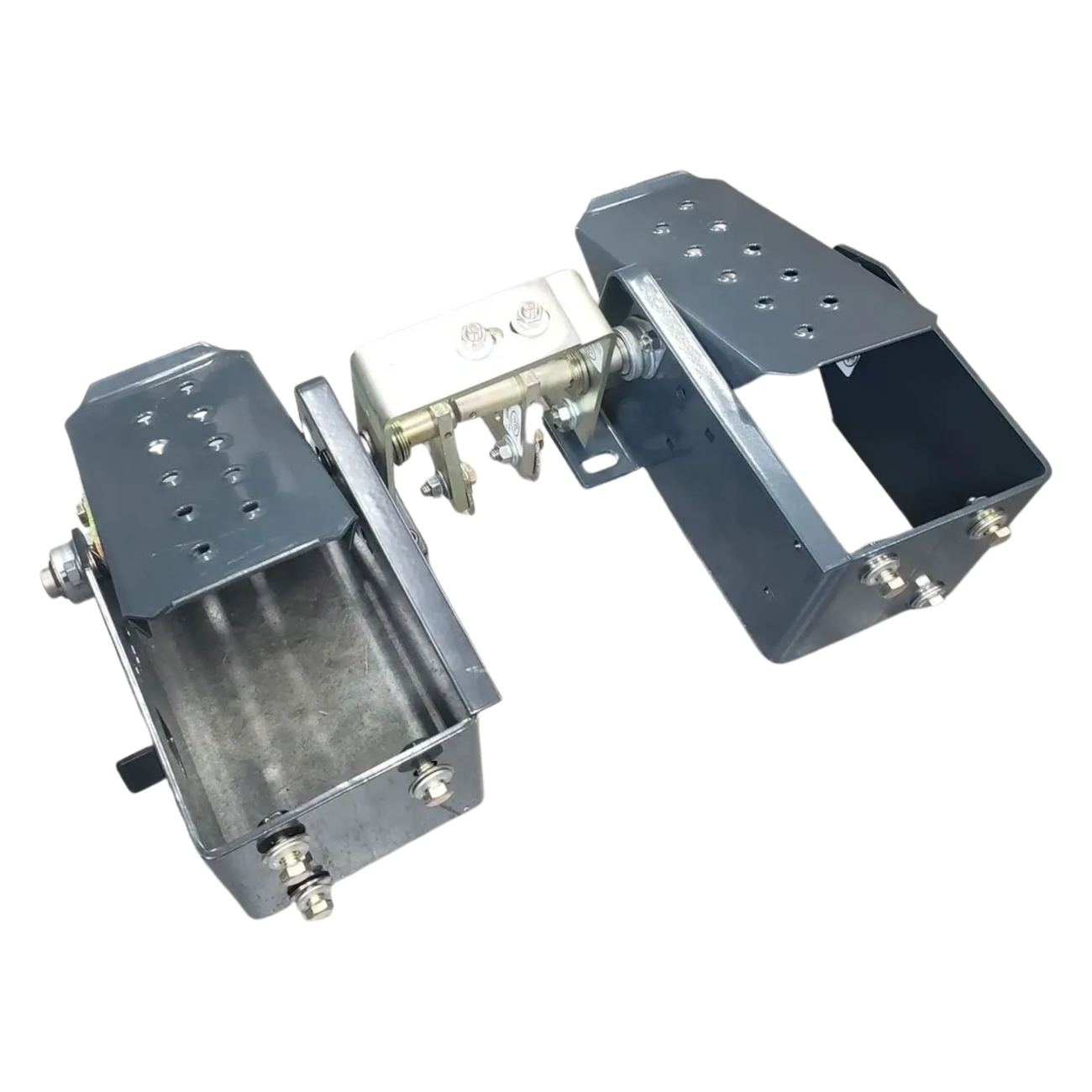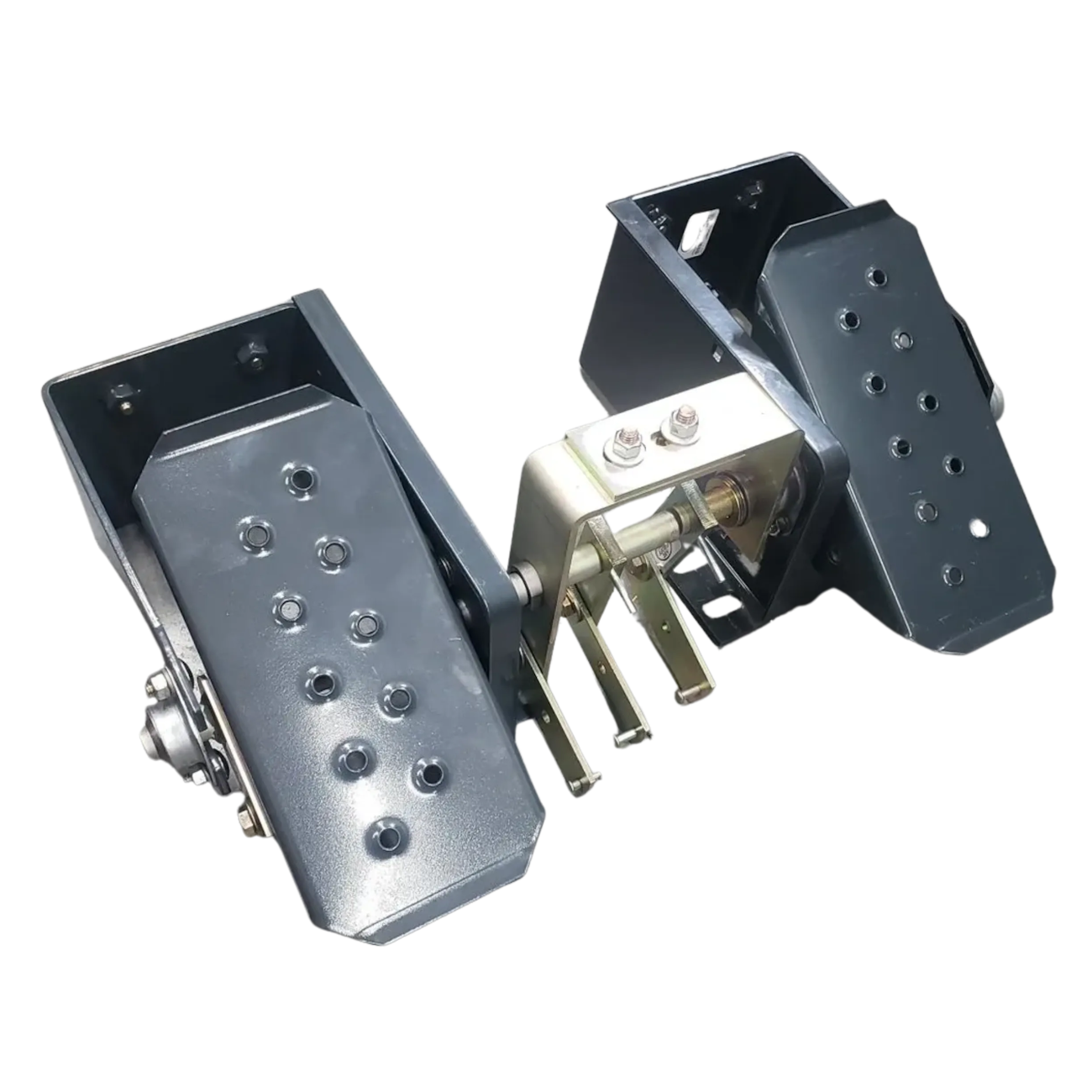 Aftermarket complete right hand & left hand foot control pedal assembly. Includes brackets (86639934 & 86639936), shafts (9622465 & 87039493), supports (86506568 & 87376949), pedals (9622462), bearings (86567251), arms (9615879), links (9622464) and attaching hardware but must reuse 3 spacers # 641419 that links for spoils that pivot on.