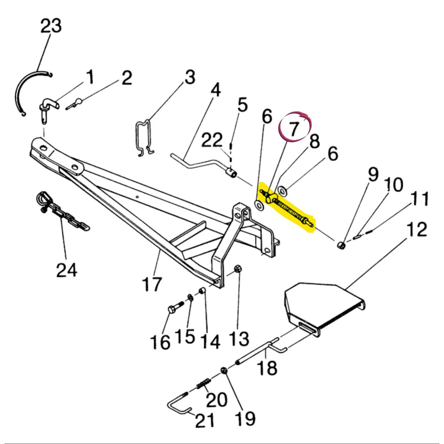 Crank screw, 13 1/2″ long, for New Holland model 158 tedders