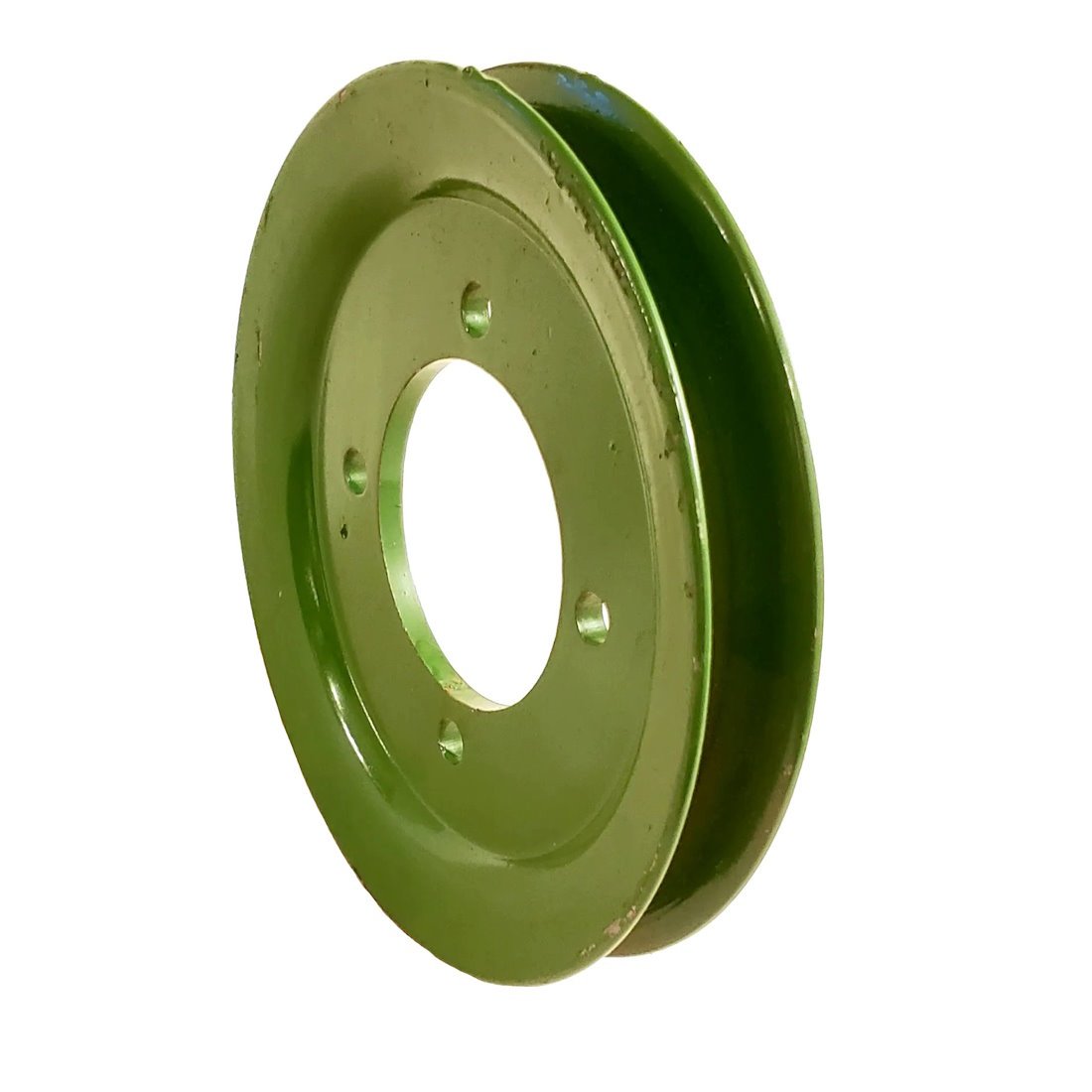 Aftermarket fan pulley for John Deere model 300 corn husker pickers. Machined one piece for improvement over original two piece pulley.