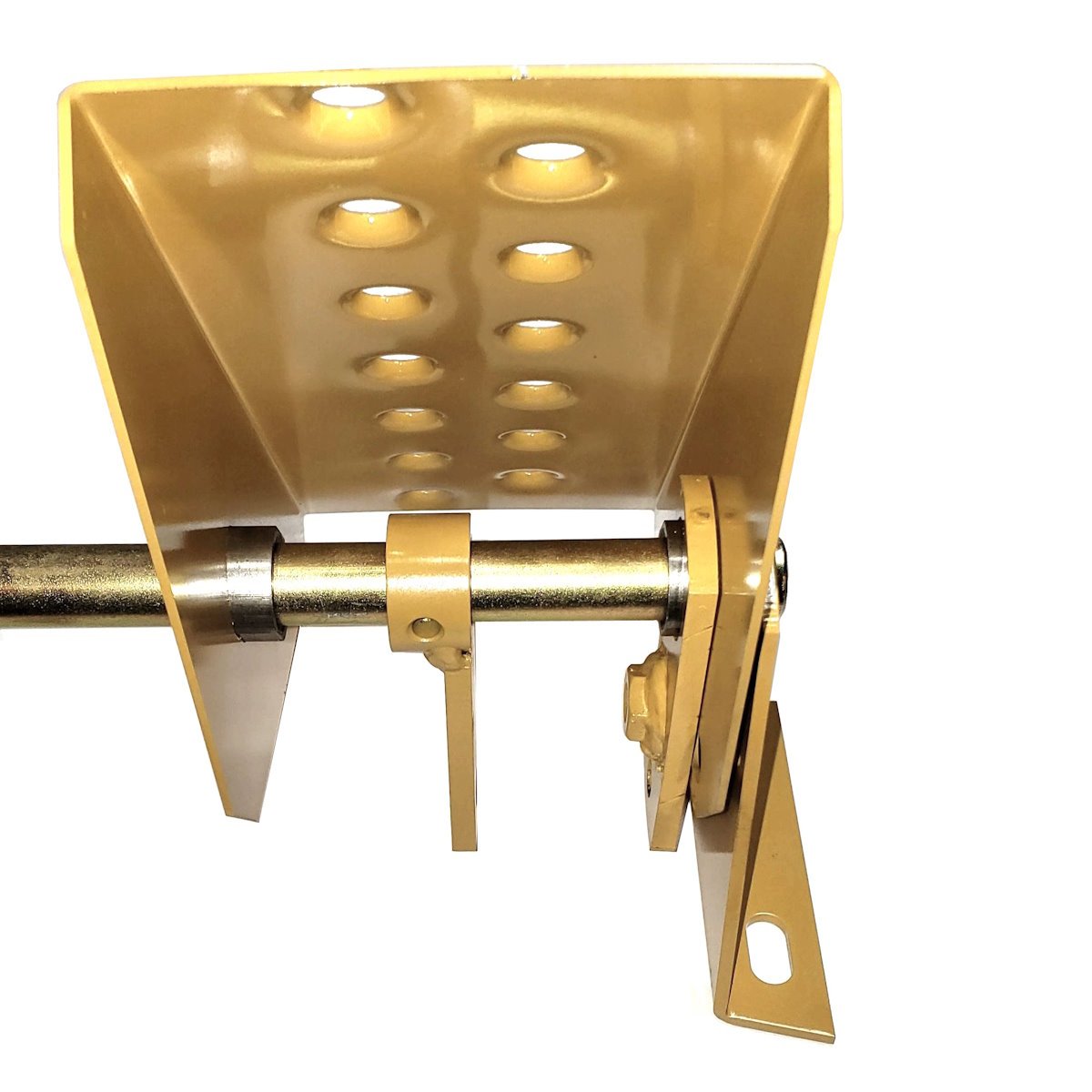 Aftermarket foot pedal control assembly with 19-11/16″ wide shaft for skid steer loaders.
