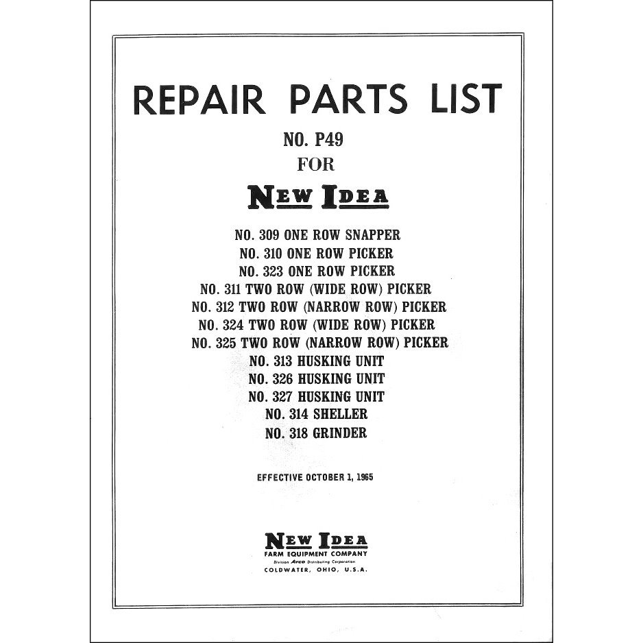 Downloadable parts book for New Idea Corn Snapper, Picker, Husker, Sheller