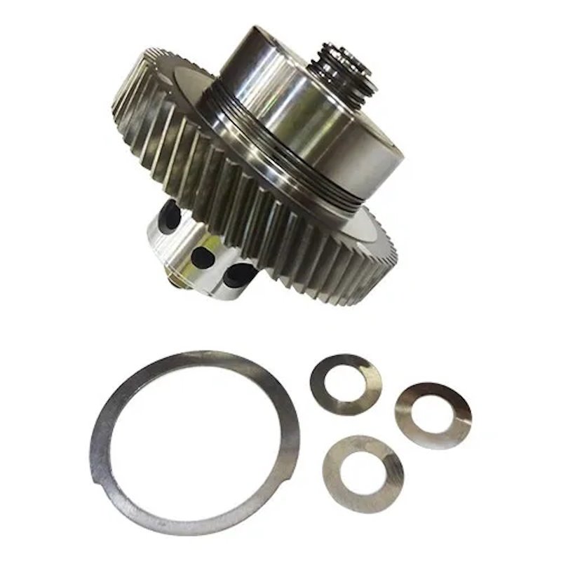 Aftermarket engine oil pump assembly, 62MM includes shaft, thrust washer, g rotor, plate, shims, spring and snap ring.