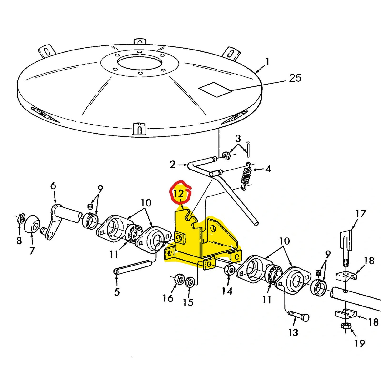 Aftermarket support bracket for tine bar on New Holland rake tedders